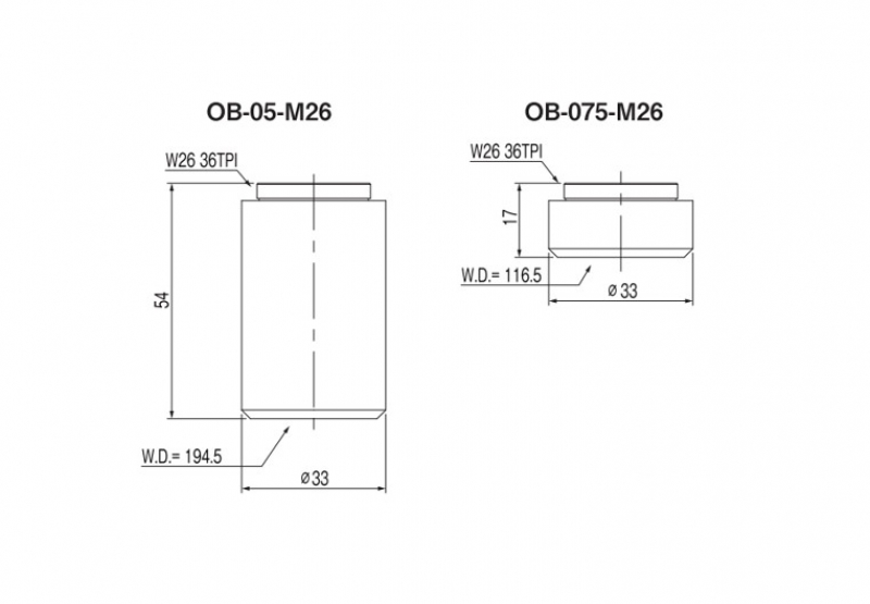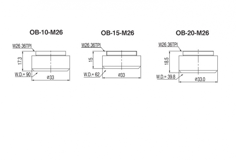 | OB-05-M26 | 0.5X | 194.5mm | 0.36-2.2X | Φ33×50mm |