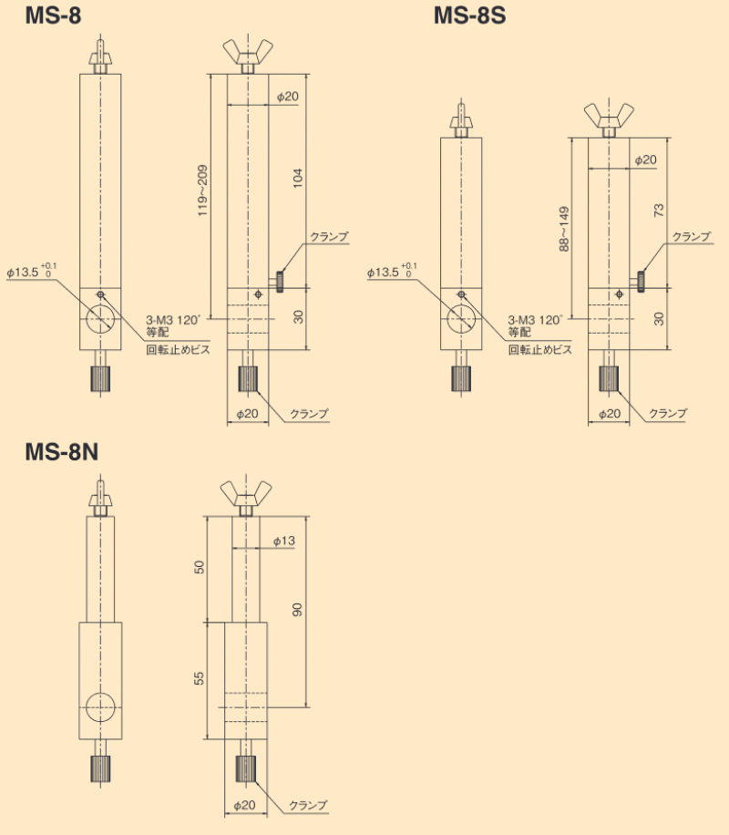 | 照明差込口 | φ5 | φ8 | φ14 | φ14 | φ14 | φ8 | φ8 | φ8 | φ8 |