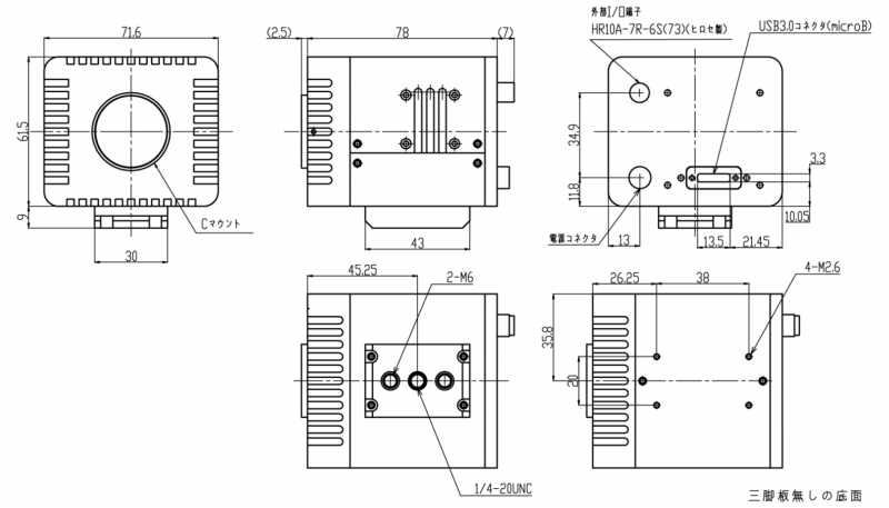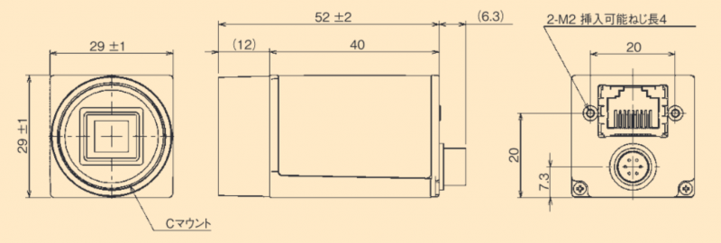 | フレームレート | Mono8:291fps | Bayer8:291fps | Mono8:72fps | Bayer8:72fps | Mono8:36fps | Bayer8/Mono8:36fps | Mono8:22fps | Bayer8/Mono8:22fps |