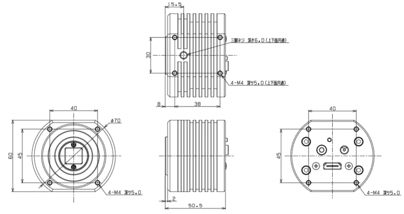 | フレームレート | Mono8:55fps | Bayer8:55fps | Mono8:32fps | Bayer8/Mono8:31fps | <Dual/Single>